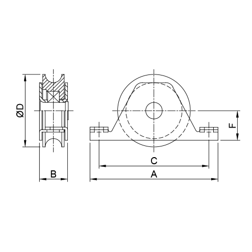 Estas poleas o ruedas son herrajes en puertas correderas. Las poleas de canal U 20 mm para encastrar están disponibles en diferentes medidas y materiales: acero y acero inoxidable. Las poleas se instalan en puertas correderas para facilitar el desplazamiento de la puerta a lo largo de la guía.