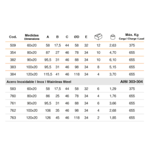 Materiales: Herrajes en materiales: acero/hierro, nylon, acero inoxidable, nylon/acero inoxidable.